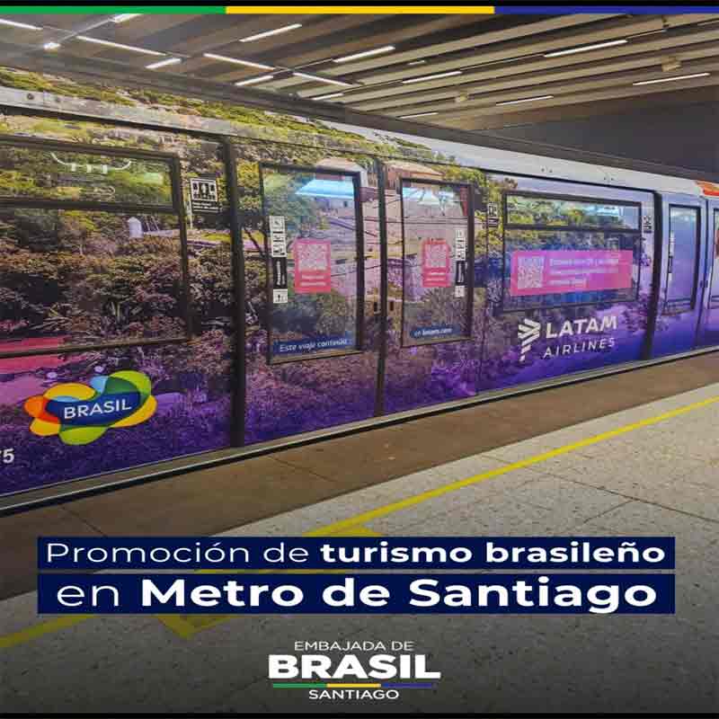 Cada imagen y frase exhibida en los vagones del metro de Santiago lleva más que un escenario: invita al público chileno a imaginar sensaciones, sabores y momentos inolvidables que solo Brasil puede ofrecer.