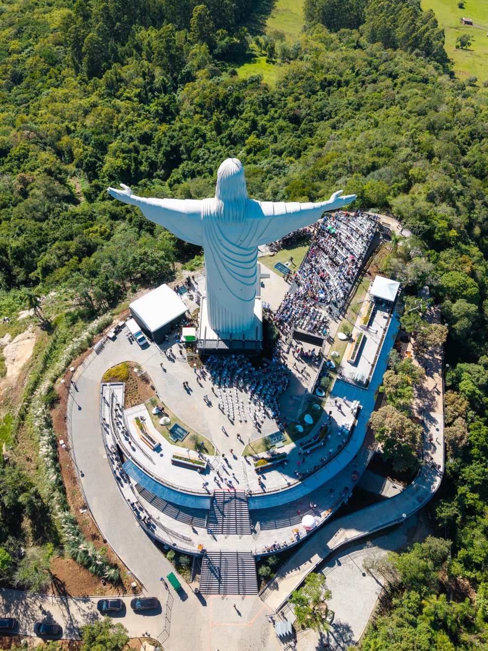 Alrededor del monumento -emplazado en una colina y con un mirador abierto al público- se encuentra una capilla, corredores al aire libre para recorrer el predio y espacios de gastronomía. La iniciativa es una apuesta por estimular el turismo religioso en una localidad que forma parte del Valle de Taquari, que abarca 40 municipios de la región central de Rio Grande do Sul, cuya población está formada en gran parte por descendientes de origen alemán, italiano y azoriano (provenientes de las Islas Azores).